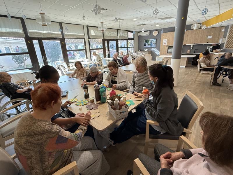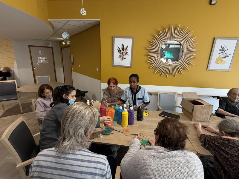 Les résidents ont été sollicités pour aider à préparer les prochaines décorations de l’unité. Chacun a participé selon ses possibilités, avec un accompagnement adapté et des consignes simples.