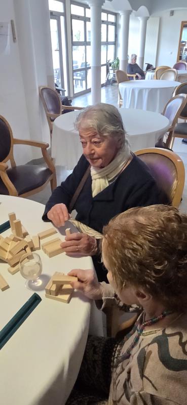 Nous jouons régulièrement, partageant des instants de complicité et de divertissement entre résidents.