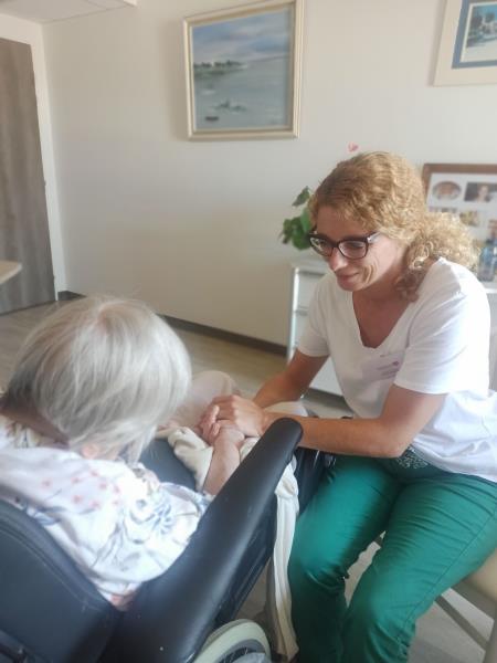 Depuis bientôt dix ans, Mme Delphine Jarriges intervient auprès des personnes âgées dépendantes de la résidence pour proposer des séances de massage adaptées. Elle le fait avec un profond respect, posant ses mains avec délicatesse sur des corps parfois marqués par la souffrance.
